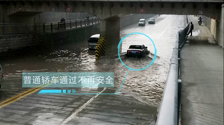 雨天行车遇积水路段,不可贸然驶入。目前,一些城市在下穿立交设立了积水警示标识标线,行车中经过下穿立交时,应注意积水警戒线,如果水位到了警戒线,意味着最低处已经积水30cm,普通轿车通过不再安全。确认安全后,挂低速挡,让车辆平稳驶入水中,保持发动机在水中有足够的动力,避免中途停车、换挡、急打方向盘,使车辆低速匀速通过积水路段。跟随其他车辆通过涉水路面时,要观察前车的通过状态,通过时顺着相同路径行驶,并保持足够的车距,以免跟车太近被迫停车导致熄火。切忌多辆车跟车连续下水,避免因为前车出现故障影响后车正常行驶。车辆在水中熄火,千万不要强行第二次打火,否则会造成积水、杂物吸入气缸导致汽车发动机的损坏。遇到积水且前后堵住无法驶离时,不要在车内等待救援,要及时组织车上乘员弃车到较高的地方等待救援。