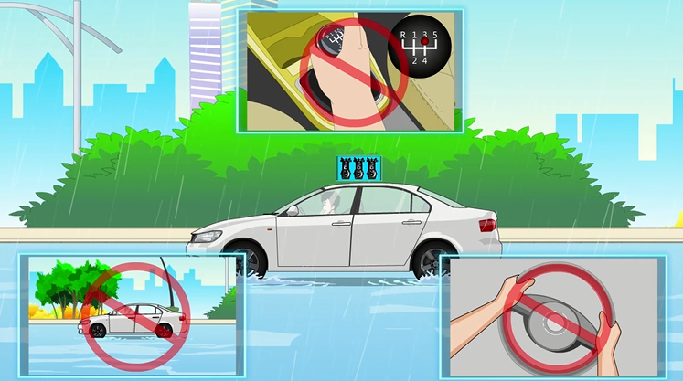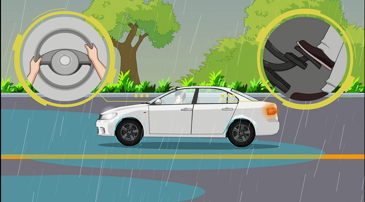 车辆在雨中打滑时,应握紧方向盘控制方向,不要大幅度打方向;同时松抬油门来降低车速,切不可一脚踩死刹车,否则容易导致方向失控,酿成大祸。如果车轮发生侧滑,应立即松抬刹车或油门,将方向盘朝后轮侧滑的一侧缓慢转动修正,切不可打反方向,也不要使用手刹,尤其是半挂汽车列车,侧滑时使用手刹会导致更严重的后果。