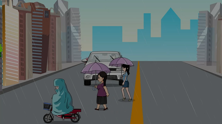 雨天,行人撑伞、骑车人穿雨披,视觉、听觉、反应都受到限制,为赶路或躲避雨淋,往往顾前不顾后,不能及时躲避车辆,甚至侵占行车道影响车辆行驶,当车辆临近时易惊慌失措而滑倒。